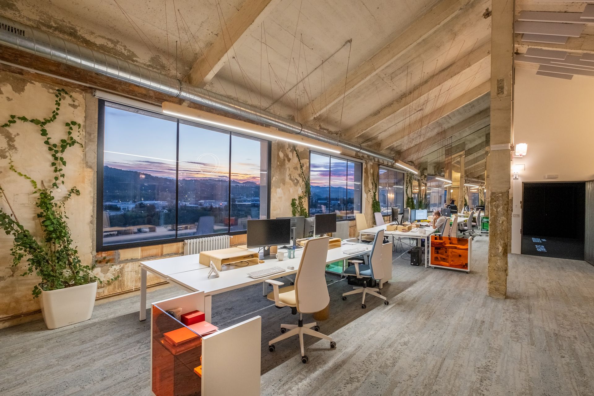 No tenéis más que cerrar los ojos e imaginaros trabajando en un espacio muy amplio, inundado de luz solar, diseñado con texturas naturales, colores suaves y una ventana enorme desde la que veis un bosque precioso.