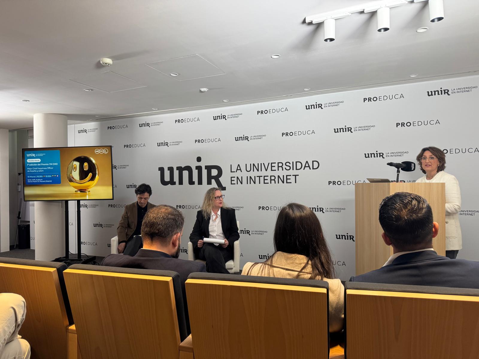 La Asociación Mundial de Chief Happiness Officers (AMCHO), junto con UNIR, celebró la primera edición de los premios I’M CHO, un evento que destacó por su buena organización.